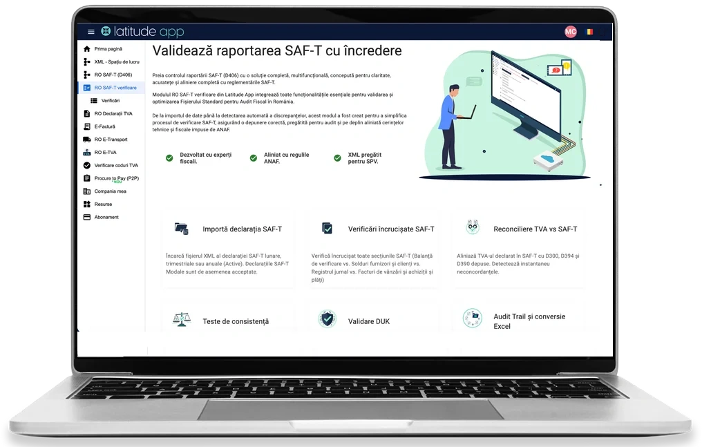 Latitude App este o aplicație precisă și ușor de utilizat, care simplifică procesele complexe de raportare fiscală. Prin automatizarea multor etape din procesul de validare, ne-a ajutat să reducem cu câteva ore bune munca manuală necesară pentru pregătirea raportărilor SAF-T.
